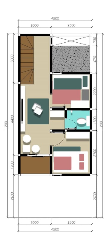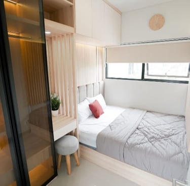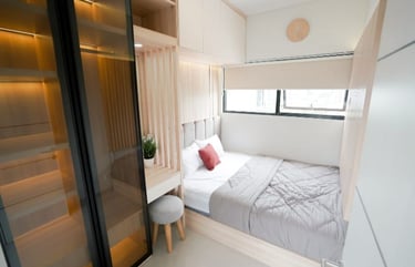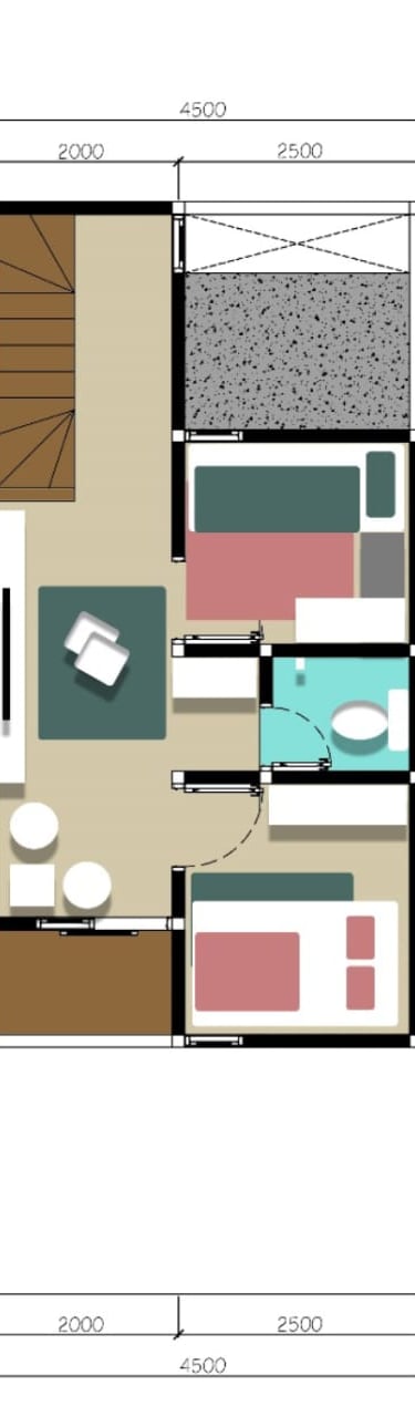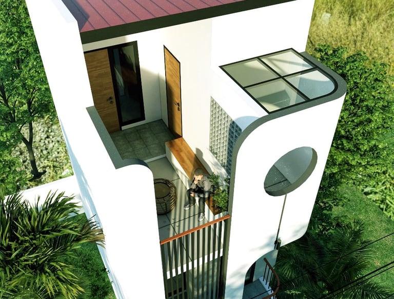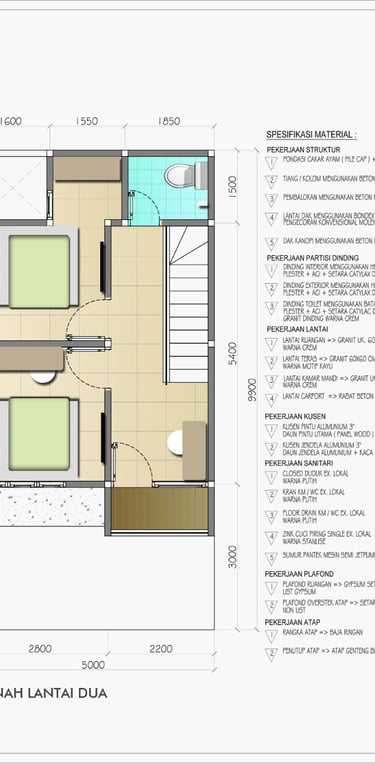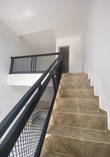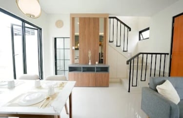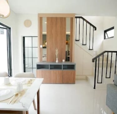 Dengan desain yang minimalis dan elegan, lantai atas rumah ini memancarkan suasana yang tenang dan damai.