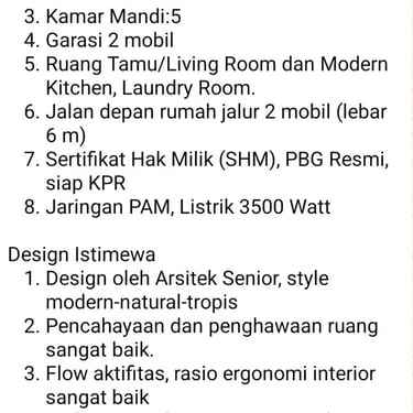 parkir 2 mobil, kamar pembantu, dapur basah, KM Pembantu